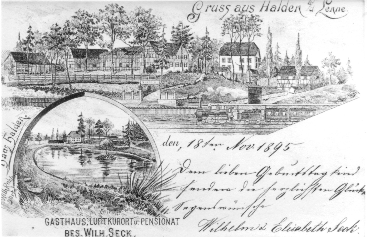 Das abgebildete Anwesen oberhalb der Bahnlinie befand sich zum Ende des 19. Jahrhunderts dort, wo heute das "Arcadeon" ist. (beachte das Datum auf der Karte: 18. November 1895 !)