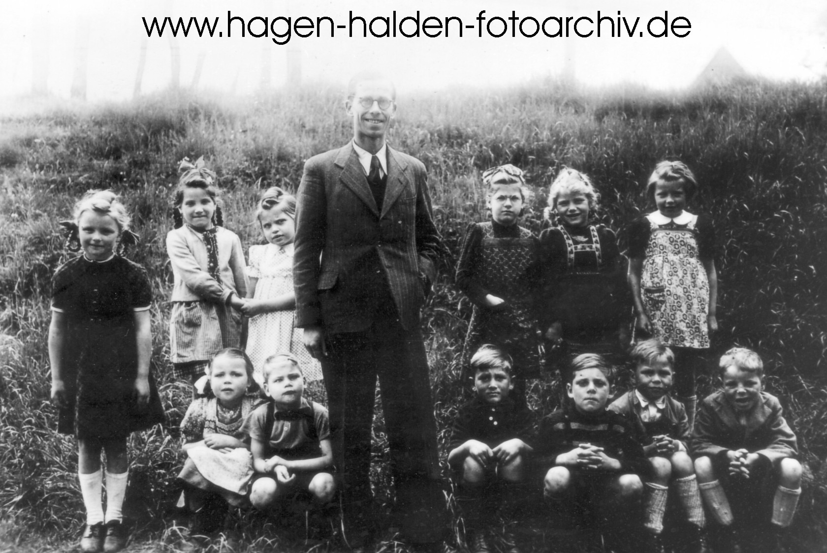 Einschulungsjahrgang 1949 mit Lehrer Max Kukelinski