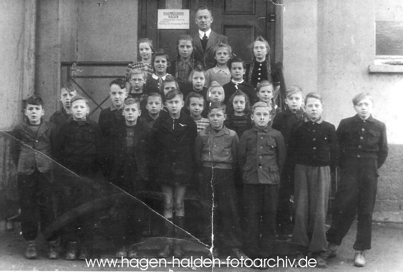 Die Schülerinnen und Schüler der 4. - 6. Klasse im Januar 1948 (Lehrer: Emil Mächel)