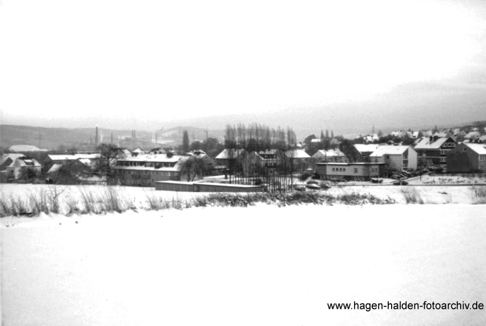 Blick Richtung Osten auf die Berchumer Strasse (rechts die Einmündung der Taunusstrasse) im Dezember 1976 .