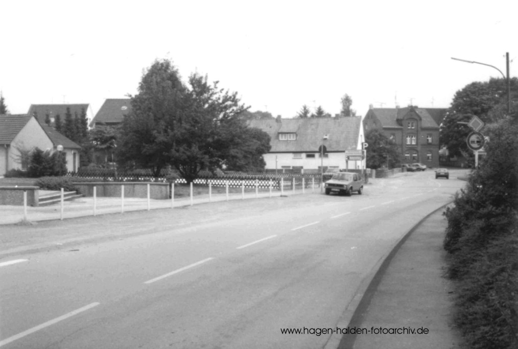 Sommer 1983: Blick in Richtung des Hauses Nr. 79 (Schmidt - früher: Busch/Ebbinghaus) - Ziegelgebäude neben der Einfahrt zum Gösselnhof