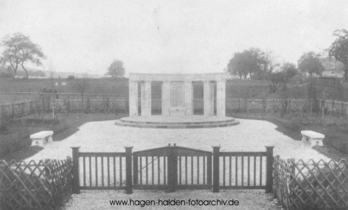 Das Haldener Ehrenmal gegenüber der evangelischen Kirche (Zeitpunkt der Aufnahme unbekannt) >dasselbe Motiv im Mai 2004<