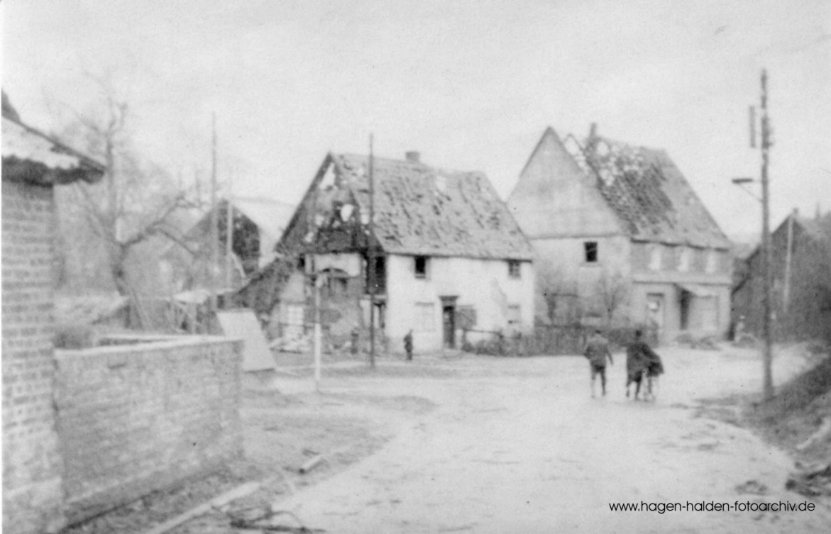 Die Einmündung der Sauerlandstrasse (links) mit Kriegsschäden (vermutlich 1940-er Jahre)