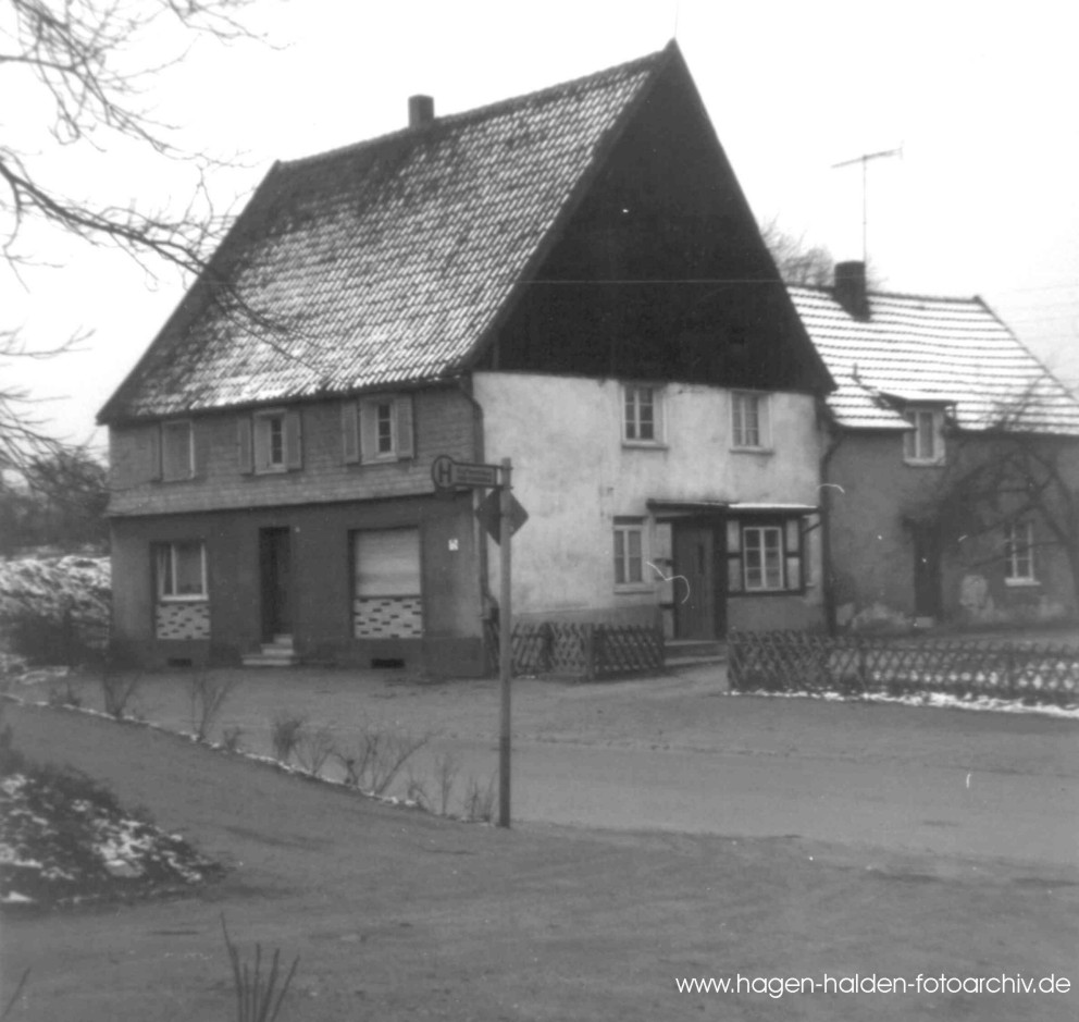 ca. 1966: das Wohnhaus an der Berchumer Strasse, das für den Neubau der kath. Kirche weichen musste -im Vordergrund die Einfahrt zur Blankenagelstrasse >dasselbe Motiv im Mai 2004<