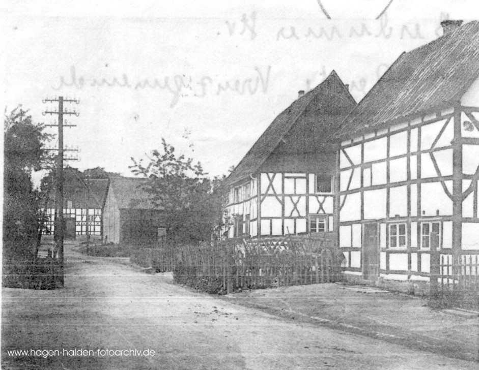 ca. 1920-er Jahre: links im Hintergrund der Hof Hamann / vorne rechts das Haus Voss (wegen der niedrigen Räume auch "Villa duck' dich" genannt)