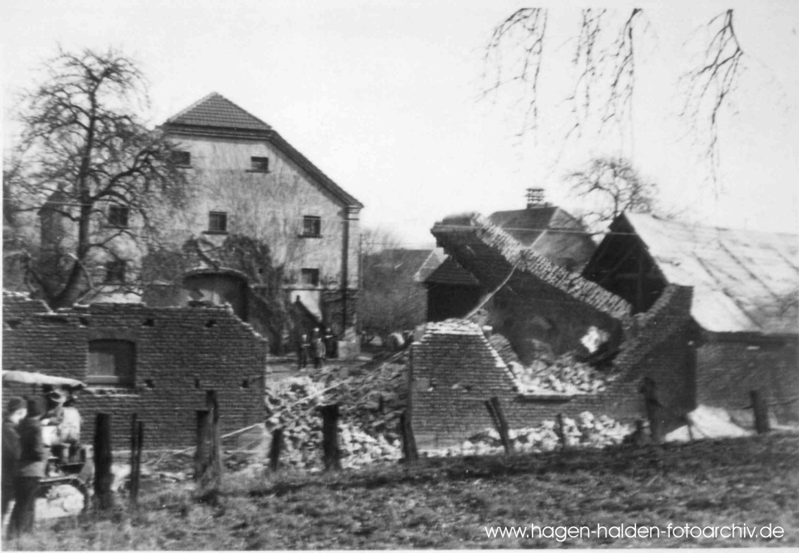 Abriss der Scheune des Hofes Schnöring-Bungstock im Jahr 1960 (fotografiert vom Eckgrundstück Berchumer Str./Dümpelstr.)