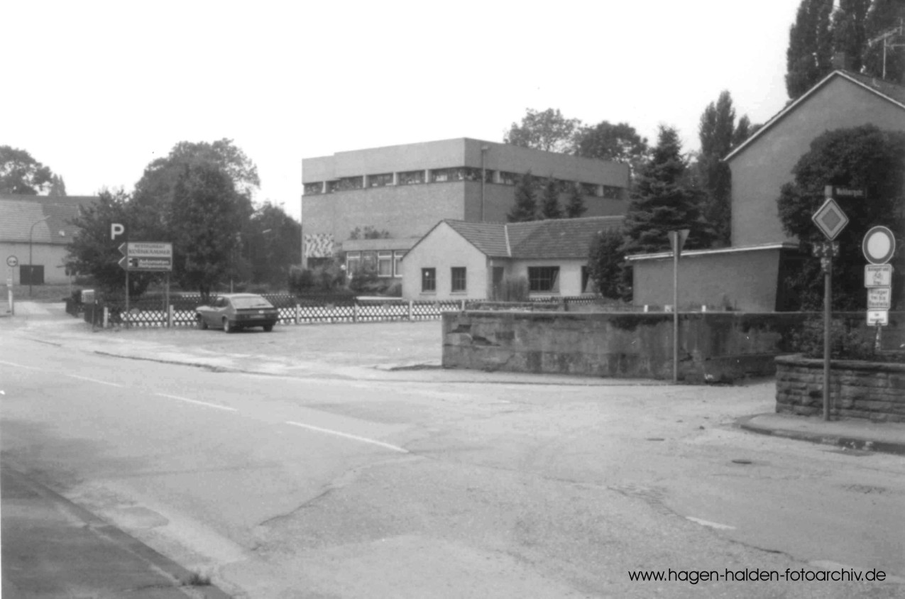 Sommer 1983: Blick auf die kath. Kirche / rechts die Einmündung der Wehbergstrasse >dasselbe Motiv im Mai 2004<