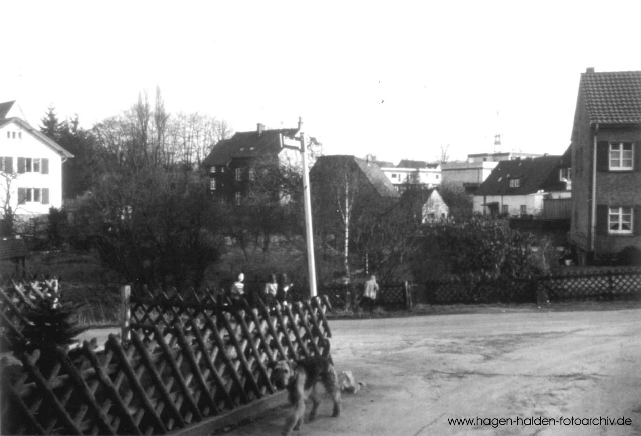 Wehbergstrasse im Jahr 1974: Blick aus der Einfahrt zum Feldmarkweg / am rechten Bildrand das Haus Wehbergstrasse Nr. 4
