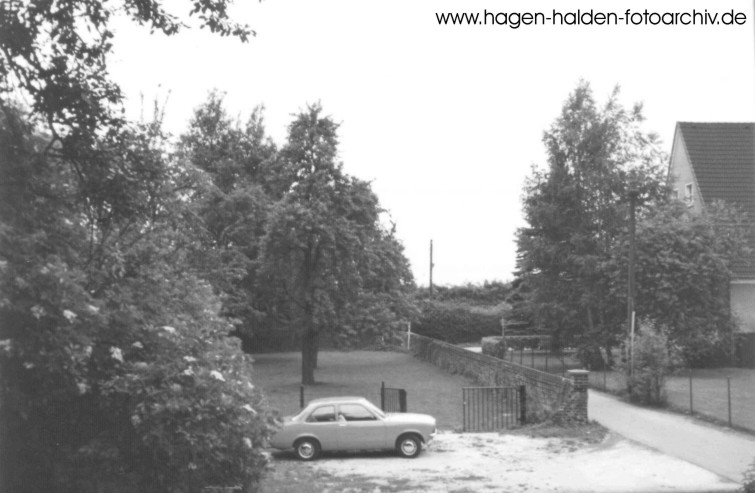 Blick auf das heutige Grundstück Blankenagelstr. 7 / Lennestr. 75 in Richtung Lennestraße - rechts: Hof Blankenagel (Juli 1975) >dasselbe Motiv im Mai 2004<