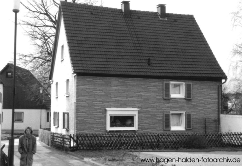 Blick in die Blankenagelstraße im Frühjahr 1987 / links das neue Haus Nr. 2 / rechts Haus Nr. 3, davor der neue Parkplatz des Grundstücks Nr. 7 >dasselbe Motiv im Mai 2004<