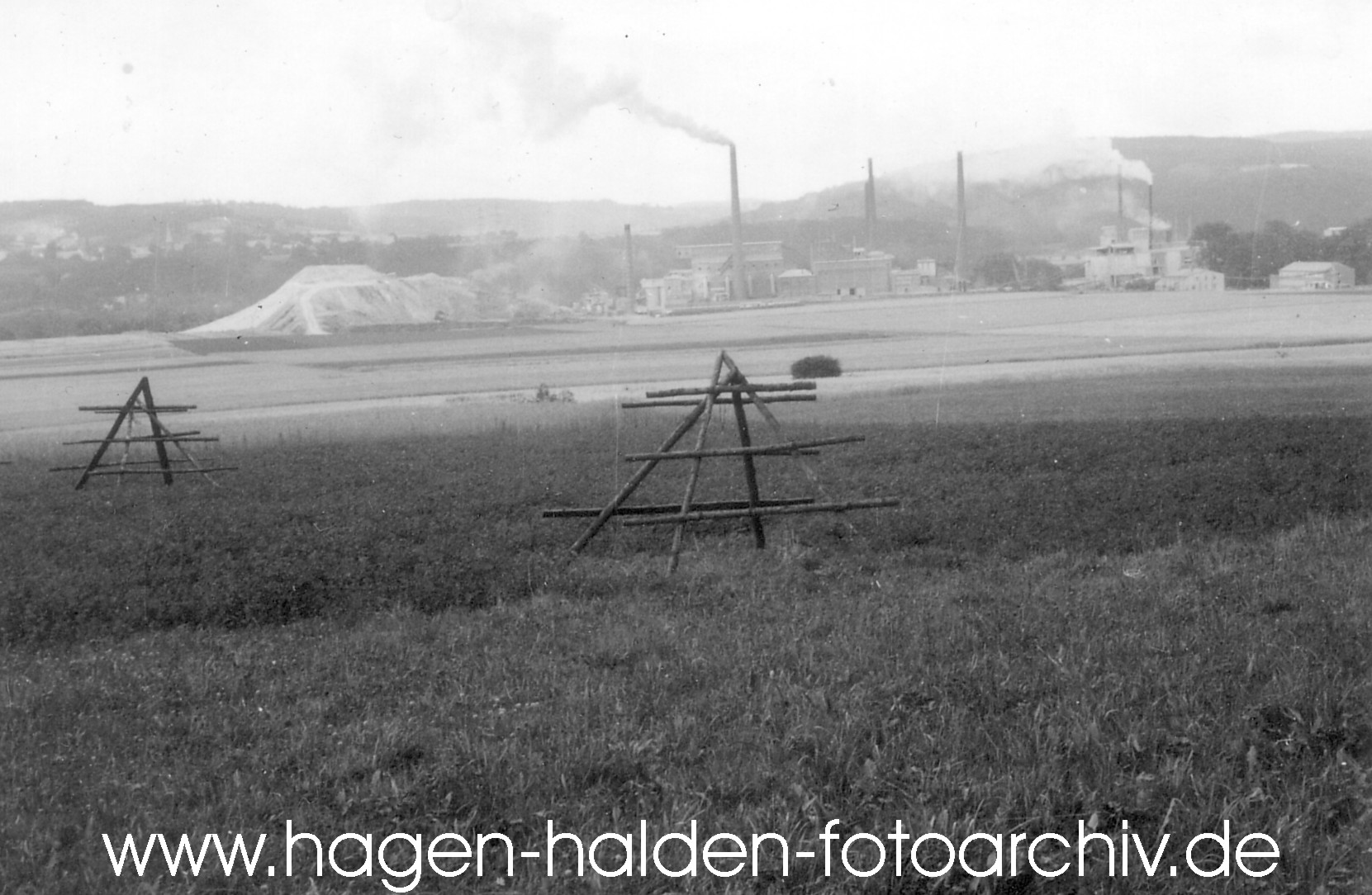 ohne Autobahn: diesmal eine Komplettansicht (links vom Werk ist die Abraumhalde zuerkennen) des Dolomitwerkes (ca. Mitte der 1950-er Jahre)
