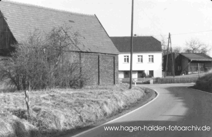 Blick aus der Düsternstraße auf Haus Nr. 68 (Febr. 1980) / links die Scheune des Hofes Blankenagel >dasselbe Motiv im Mai 2004<