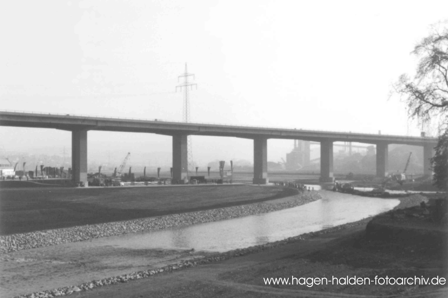 Ein historischer Augenblick: das erste Lennewasser strömt in das neue Flussbett >Hochwasser nach der Lenneverlegung<